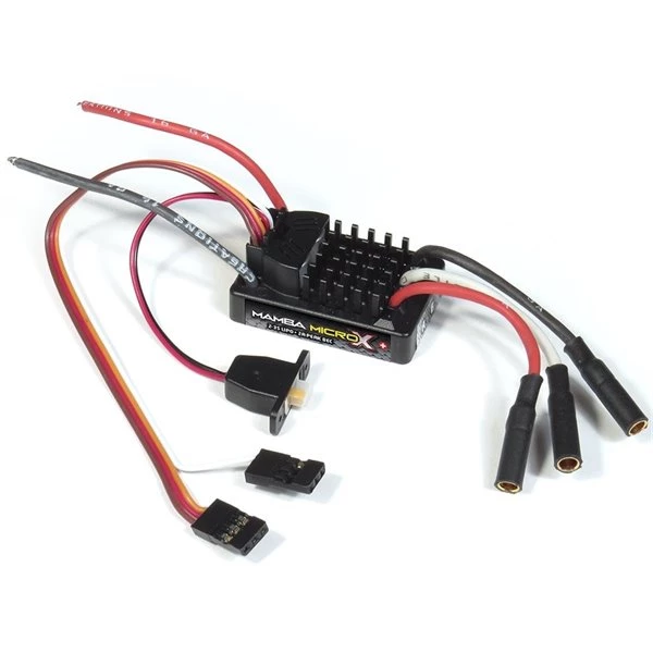 Following suit with the other Mamba X Series ESCs, the Mamba Micro X features even more extreme performance and capabilities than the model it replaces. The Micro X receives a heavy-duty BEC (battery eliminator circuit) to handle today’s high-draw digital servos and also features a programmable Auxiliary Wire (AUX) that allows the user to make “on-the-go” adjustments to several settings, such as torque control and max throttle, directly from a compatible transmitter. This allows you to fine-tune the performance of the Micro X to meet changing driving conditions.