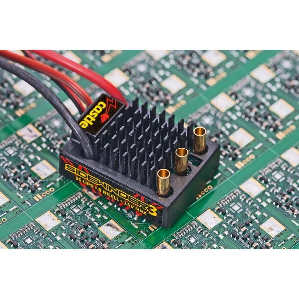 Although Sidewinder 3 and Castle brushless motors are waterproof, always rinse the ESC and motor with fresh water after exposure to corrosives or dirt. While the motor and controller may be waterproof, Castle suggests users confirm that the rest of their vehicle, including the batteries, servo, radio and chassis, are also waterproof before exposing them to liquids of any kind.