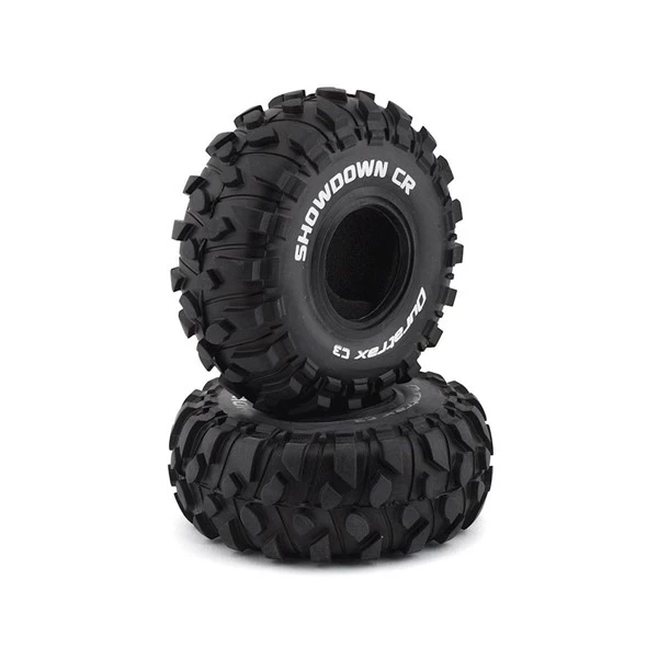 This is a set of Duratrax Showdown CR 2.2" Crawler Tires. These tires are available mounted or unmounted and are sold in pairs with foam inserts.