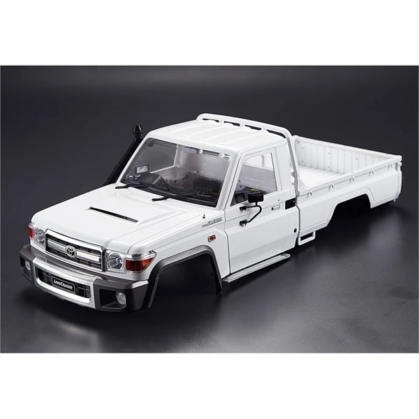 1/10 scale Toyota Landcruiser 70 series hard body is ultra realistic and includes opening doors, hood, and tailgate. LED ready, this body includes lenses and buckets for headlights, tail lights, and marker lights. (Does not include LEDs)