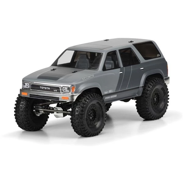 This is a 1991 Toyota 4Runner Clear Body for Crawlers. Pro-Line is ready to unleash another fully licensed body for Toyota fans: the 1991 Toyota 4Runner! All of the scale detail from the full-size 2nd Generation 4Runner SUV body style has been scaled down to fit on your 12.3" wheelbase Crawler. The 4Runner is an iconic vehicle that serves as the base of many full-size off-road rigs and now you can have your own for your Scale Crawler! See your scale project come to life, get yours today!