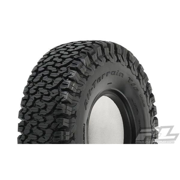 Pro-Line BFGoodrich All-Terrain KO2 1.9" Rock Crawler Tires were developed in collaboration BFGoodrich, to give your truck the ultimate in scale look and multi-surface performance. Known for extreme off-road traction and awesome street performance in the full scale world, the BFGoodrich All-Terrain KO2 tire features an iconic layout of densely packed tread blocks with a large number of tread sipes that will give your rig improved traction on any terrain! Pro-Line engineers decided that the KO2 tire needed to be 4.35” tall x 1.42” wide for the perfect balance of Scale looks and performance!
