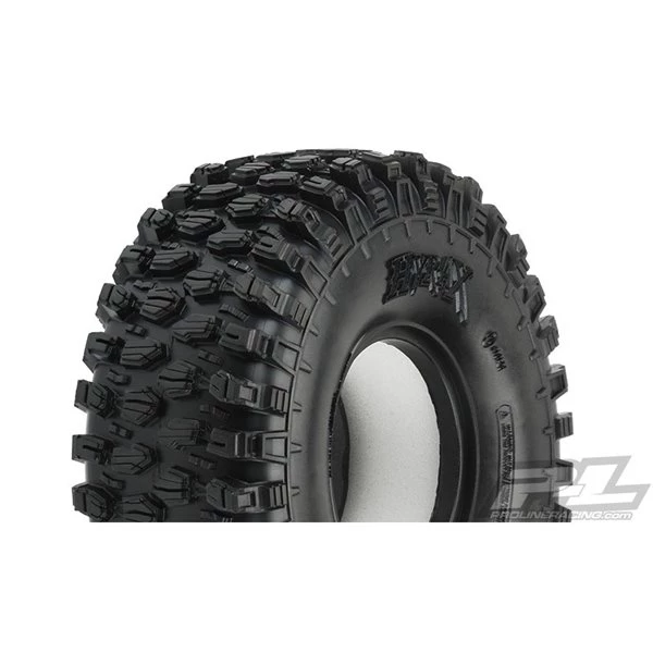 The Pro-Line Hyrax 1.9" Rock Crawler Tire was designed from the ground up for maximum grip on the toughest terrain. The Hyrax features an aggressive and open tread pattern with each tread block containing multiple sipes for incredible tread flex. The highly detailed connected tread on the sidewall of the Hyrax extends out for unmatched side-hilling performance. The Hyrax also features stepped tread blocks that create even more forward gripping edges that dig into slick rock like no other scale tire Pro-Line has produced to date.