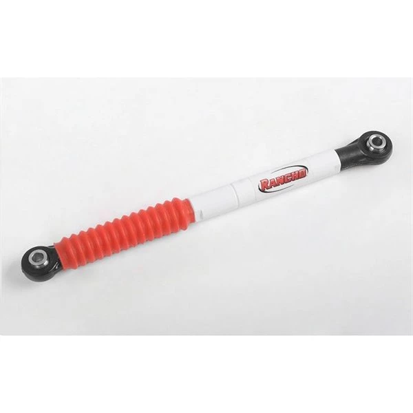 The Adjustable Steering Stabilizer is the second officially licensed product straight from Rancho® product line. It is fully adjustable from 70-100mm, allowing it to be mounted to most scale RC trucks including all of ours and most of Axial's, Traxxas', and Element RC trucks. The adjustment rod is made out of heat-treated carbon steel to withstand extreme conditions and the red rubber boot protects the adjustment rod from the elements for even more durability while adding to the scale look. The included sticker sheet has various models of Rancho product lines to make it even easier to model this after its full-scale counterparts. It's capped off with heavy duty 3mm Plastic Rod ends that are easily replaceable if needed.