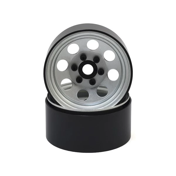 SSD 8 Hole 1.9" Steel Beadlock Wheels feature a silver finish and machined aluminum 12mm hubs, combined with an internal beadlock design to create a great looking scale replica of the classic 8-hole style wheel at an affordable price.
