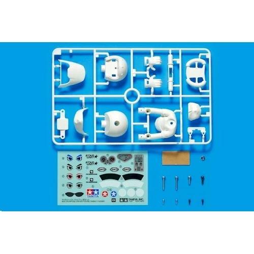 Newly designed and versatile, this driver figure is ready to take the wheel or handlebar of your favorite R/C kit model. Hand parts rotate to allow their fitting this fitting. Assembly driver figure with two helmet types: screw-attach the visor and chin guard parts for a motocross style helmet or remove them for a standard type. Driver may be finished in a T-shirt. Includes stickers to create 4 different designs of eye, plus one pair of sunglasses Additional stickers for analog instrumentation for motorbike models, and digital displays for both car and bike models, plus plenty of generic designs are included. Paint as you like using Tamiya Color plastic paints. Compatible with T3-01, WR-02 and GF-01 chassis models (not WR-02G and Heavy Dump Truck models).
