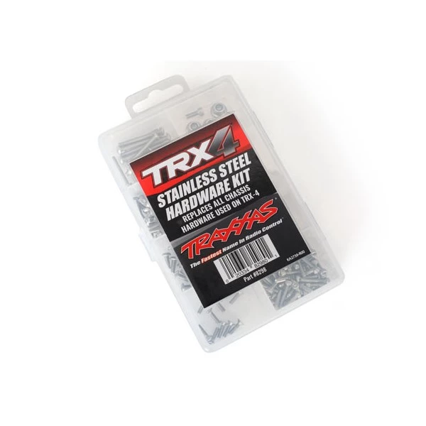 The Traxxas TRX-4 Stainless Steel Screw and Hardware Kit replaces all chassis screws in the TRX-4 Scale (does not include body screws). Package includes stainless steel hardware compatible with the TRX-4.