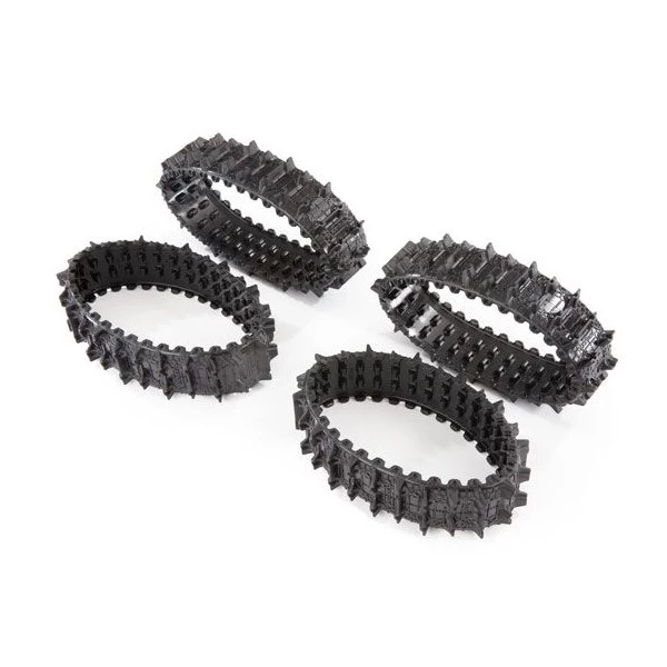 New Deep-Terrain Treads extend the all-terrain dominance of Traxx-equipped vehicles to extreme surface conditions like deep snow, sand, and mud. The purposefully-engineered treads dig deep and pack into loose surfaces for maximum bite to power through the most challenging conditions. The wide contact patch provides additional flotation to keep your Traxx-equipped model running strong on top of loose surfaces like deep snow and fine sand.