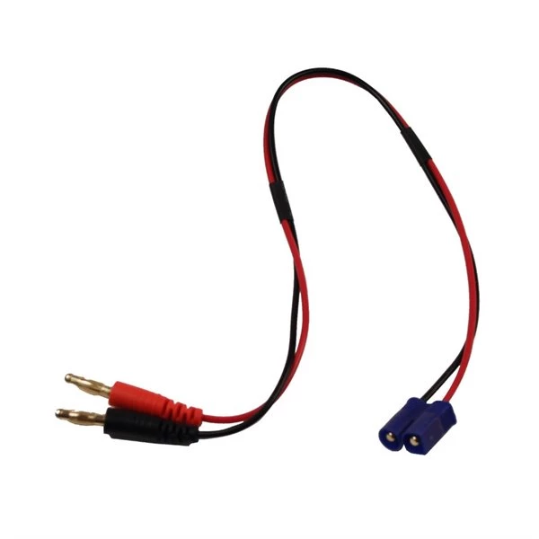 Venom EC5 Plug to Banana Plugs in 18 Gauge Wire. This wire harness is typically used to connect a battery charger that has female banana connector ports for its power output. Packaged in poly bag and header card. Manufactured by Venom.